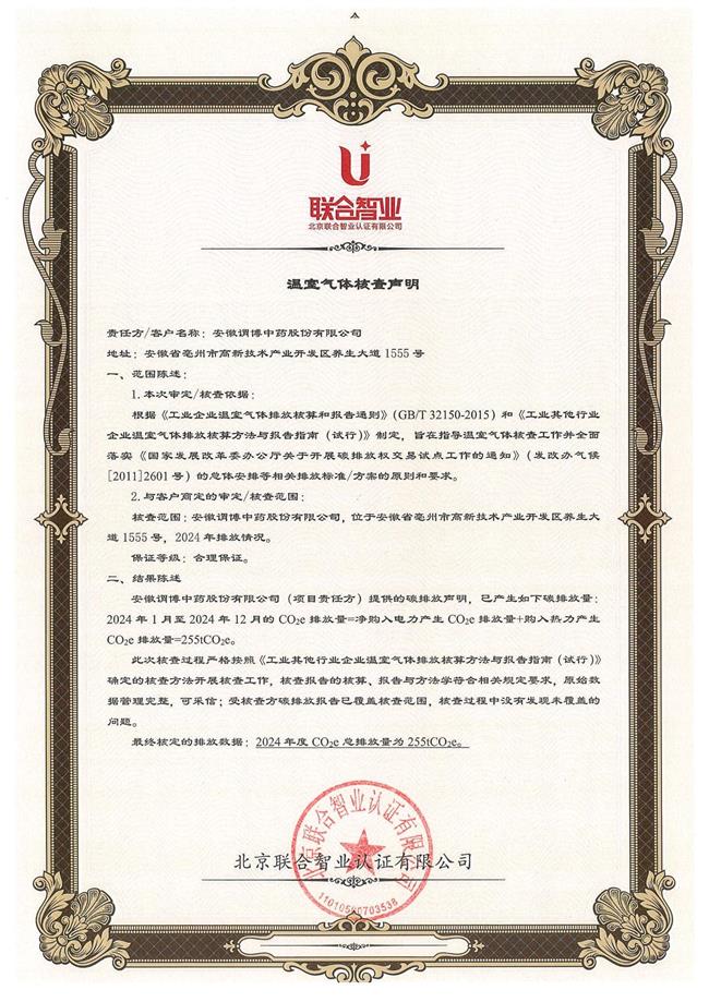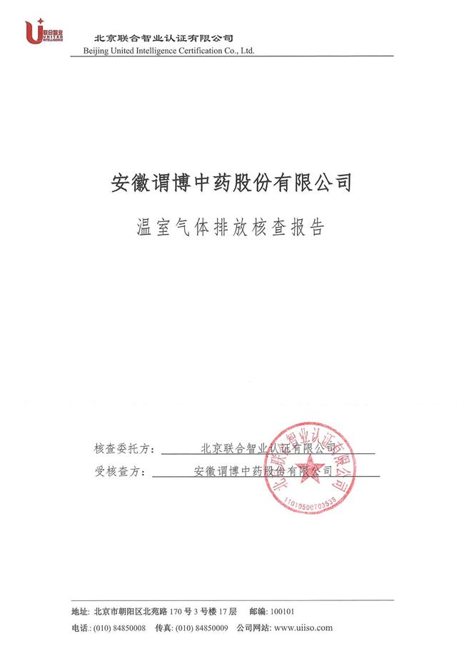 安徽謂博中藥股份有限公司溫室氣體排放核查報(bào)告